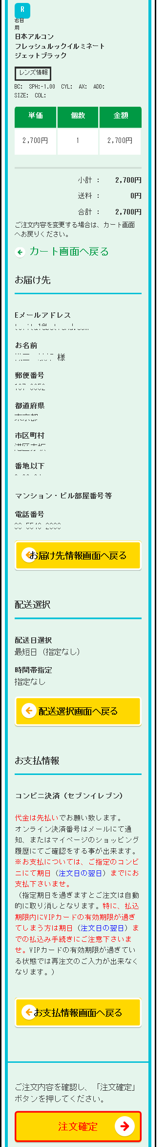 を確認の上、「注文確定」を押します。